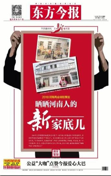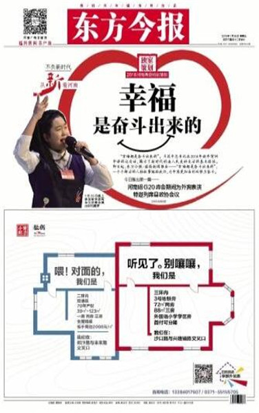 同時(shí),東方今報(bào)還推出2018河南兩會特別策劃——“幸福都是奮斗出來的”,側(cè)重報(bào)道正在奮斗且勵(lì)志的社會中堅(jiān)力量,一個(gè)個(gè)鮮活的人物故事勉勵(lì)我們,為中原更加出彩而努力奮斗。截至目前已刊登四篇報(bào)道,分別是《幸福是奮斗出來的系列報(bào)道之(1) 河南妞兩次為“彭媽媽”表演 特邀列席縣政協(xié)會議》《幸福是奮斗出來的系列報(bào)道之(2) 90后辭年薪二十萬工作創(chuàng)業(yè):我的心愿是“藝術(shù)+”》《幸福是奮斗出來的系列報(bào)道之(3) “海歸農(nóng)夫”師鵬飛:現(xiàn)代農(nóng)場放飛創(chuàng)業(yè)夢》。