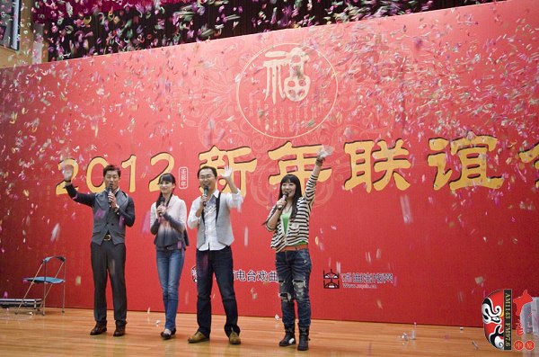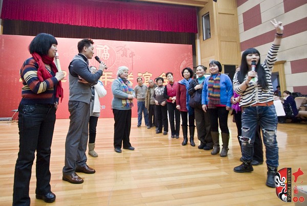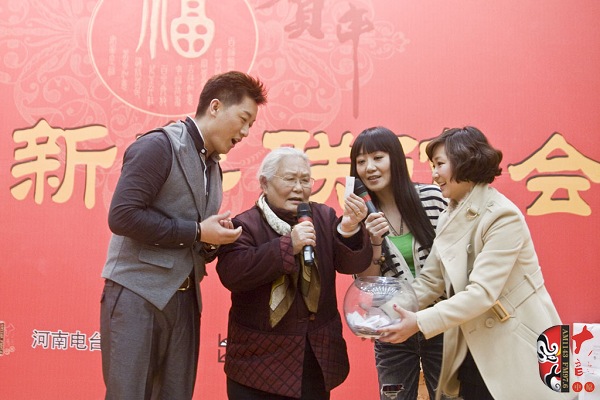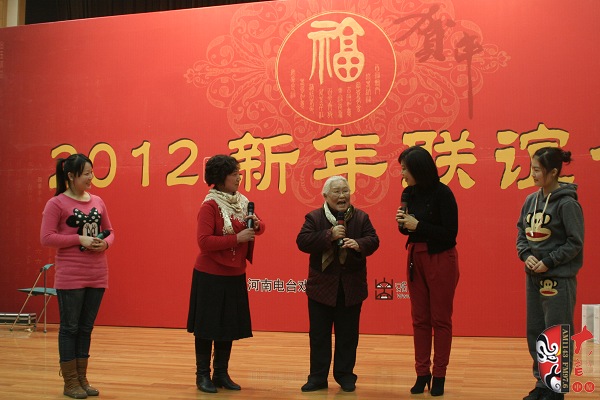 12月28日,一臺由河南藝術家及戲迷共同參與的新春聯誼會在河南廣播大廈舉行。本次活動由河南電臺戲曲廣播、戲曲出版網共同舉辦。聯誼會上,老中青三代名家與戲迷歡聚一堂,氣氛異常熱烈。曾經在電影《朝陽溝》中飾演拴保娘的豫劇名家高潔、在電影《扒瓜園》中飾演國英的越調名家劉琳,中國戲劇梅花獎得主楊帥學、申小梅,豫劇《朝陽溝》中新一代“拴?!钡娘椦菡呤⒓t林,為現場熱情的戲迷表演了各自的拿手好戲。藝術家的精彩演唱博得現場觀眾叫好聲、掌聲不斷,戲曲名家與戲迷共同參與的互動游戲使得本次聯誼會高潮迭起……當豫劇大師馬金鳳的身影出現在大屏幕上時,現場一片安靜。今年90高齡的馬金鳳大師在聽說戲迷聯誼會舉行的消息后,特別送來了新年的問候和祝福,馬老的祝福視頻播完,激動的戲迷爆發(fā)出一陣熱烈的掌聲……戲迷趙錢孫(網名)專程從北京趕來參加活動,這位小伙子是越調藝術的忠實的支持者,2007年他自費創(chuàng)辦了中國越調網,在宣傳和推介越調劇種方面做出了杰出貢獻。聯誼會上,他和其他四位越調戲迷自拉自唱了越調申派名段《收姜維》中的“四千歲你莫要羞愧難當”,博得了現場觀眾的熱情掌聲。85歲的戲迷、著名戲曲活動家劉建勛老師為表達激動的心情,特別為本次聯誼會寫了一首五言律詩,獻給熱情的戲迷觀眾。 “歲末二十八,大地又回春。戲迷慶元旦,賓客多如云。久別重逢日,相見格外親。你拉我來唱,鄉(xiāng)音暖人心。唱出心坎語,唱出好精神,唱出凌云志,唱響河南人。共同來祝愿:活過一百春!聯誼會結束后,很多觀眾意猶未盡,久久不愿離去,他們紛紛與自己喜愛的戲曲名家溝通交流、合影留念。多位戲迷在接受采訪時說:感謝戲曲廣播舉辦了這次聯誼會,不僅給戲迷提供了交流的平臺,而且拉進了戲迷與名家的距離……(本次活動部分照片由小草提供)