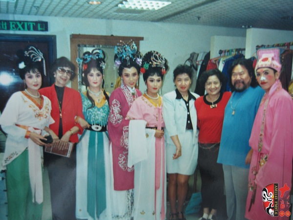 1996年武慧敏(左三)赴港演出《風(fēng)流才子》在劇中飾秋香,演出結(jié)束在后臺(tái)與香港友人合影