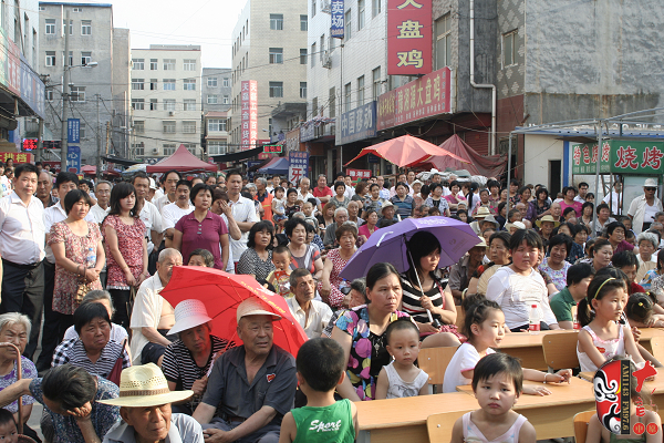 本次活動是在河南進行的首場活動,當天非常炎熱,但是大家看戲的熱情絲毫沒有減弱。街道里擠滿了前來看戲的居民,大家一邊鼓掌一邊揮動著扇子,別有一番風味。整個活動持續(xù)兩個半小時,隨著演出的進行,觀眾的熱情不斷高漲,人群中時而掌聲如雷,時而捧腹大笑?;顒咏Y(jié)束之后,觀眾依然不肯離場,當?shù)責崆榈膽蚯鷲酆谜呒娂娚吓_,繼續(xù)著自娛自樂的活動。