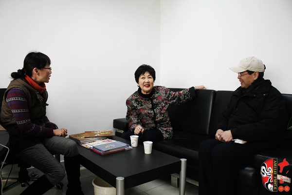 河南人民廣播電臺副臺長翟國選(左)親自接見京劇荀派傳人孫毓敏(右)