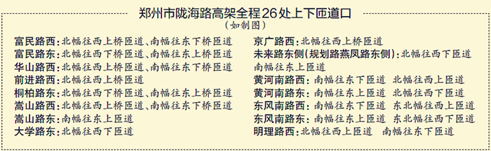 需要注意的是,由于地面一層、部分立交及上下橋匝道尚未完工,還不能完全發(fā)揮分流疏導(dǎo)的作用,高架開通后,嵩山路、大學(xué)路、京廣路、未來路、黃河南路、東風(fēng)南路、明理路等下橋匝道車流會增大,給地面交通帶來沖擊,在部分區(qū)域可能會出現(xiàn)交通擁堵,到時(shí)可能會出現(xiàn)上橋容易下橋難的情況。