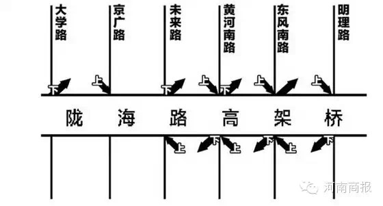 隴海路高架橋的各個(gè)上下路口具體位置圖