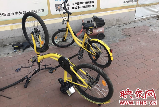 車子損壞率有多少?目前并不能準(zhǔn)確統(tǒng)計。3月27日上午,記者來到位于鄭州政六街與豐產(chǎn)路交叉口附近的一處ofo共享單車維修點。