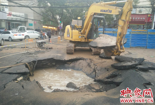 鄭州自來(lái)水公司迅速組織維修人員到場(chǎng)搶修。負(fù)責(zé)該區(qū)域維修任務(wù)的三強(qiáng)公司政七街維修隊(duì)維修一班第一時(shí)間趕赴現(xiàn)場(chǎng)止水、搶修。維修人員分班作業(yè),一組擺放警示標(biāo)志,協(xié)調(diào)交警封閉道路,一組緊急關(guān)閉相關(guān)閥門(mén)實(shí)施止水,調(diào)運(yùn)搶修機(jī)械、安排送水車(chē)趕往現(xiàn)場(chǎng)。