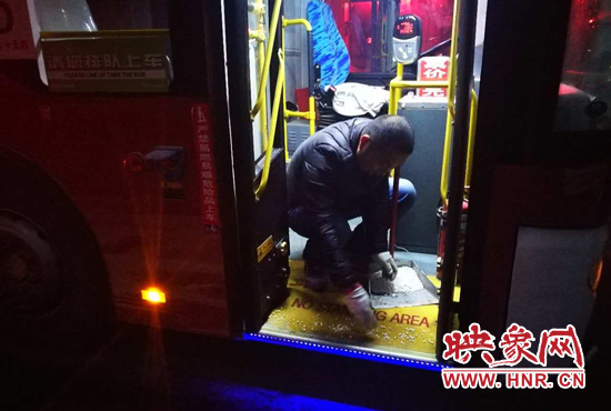 映象網(wǎng)訊(記者 燕子丹 文/圖)13日夜間,降雪如約而至。鄭州公交二公司全面啟動(dòng)惡劣天氣應(yīng)急預(yù)案,應(yīng)急工作領(lǐng)導(dǎo)小組于13日夜間分赴各個(gè)公交場站,對公交車輛進(jìn)行安全檢查,在場區(qū)、站點(diǎn)等地鋪灑融雪劑,保證車輛第二天能夠安全上路。