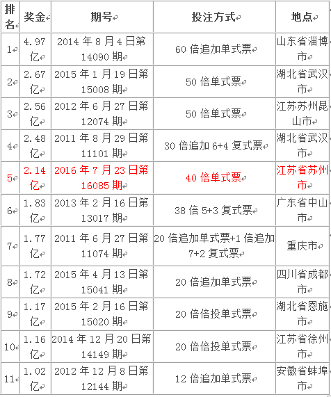 數(shù)據(jù)顯示,江蘇省41注頭獎(含1注追加)出自蘇州市第3205005209101體彩投注站,其中一張中獎彩票中得40注頭獎,該中獎票為一張單式票,進行了40倍投注,投注共計80元,該票累計中獎2.14億元。為今年體彩大樂透開出的第1個億元大獎。