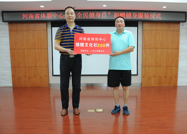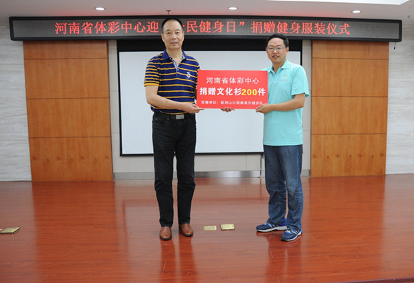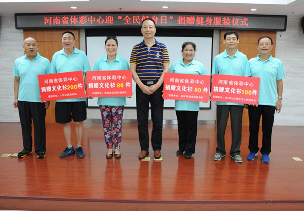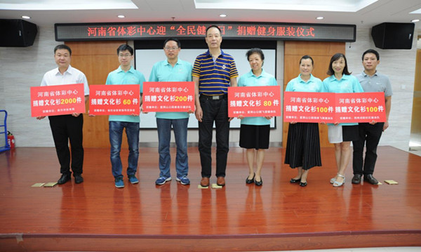 今年的8月8日將迎來我國第8個“全民健身日”,為了有力支持我省的全民健身工作,滿足廣大人民群眾日益增長的健身需求,河南省體育彩票管理中心于7月29日上午向社會團(tuán)體和今年我省“全民健身日”主題活動舉辦地捐贈了3000件體恤衫,并在河南體彩中心會議室舉行了簡短的捐贈儀式。
