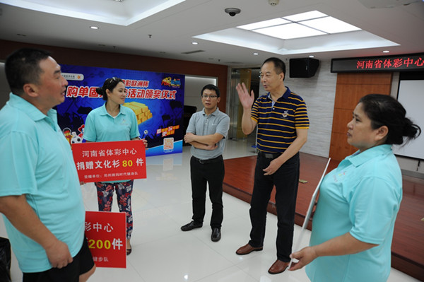 據(jù)河南省體彩中心主任孫和平介紹,中國體育彩票作為國家公益彩票,其發(fā)行宗旨是“來之于民 用之于民”,一直履行著支持全民健身這一光榮使命。去年是《意見》印發(fā)的第二年,河南體彩中心已開始落實(shí)該文件精神,向社會健身團(tuán)體捐贈了3000件健身服裝,受到健身群體的歡迎和高度贊揚(yáng),取得了良好的社會效益。今年的捐贈是河南體彩中心支持我省全民健身這一公益活動的延續(xù),今后我們將嘗試擴(kuò)大捐贈范圍,讓更多的健身群體在強(qiáng)身健體、重視體育、支持體育、參與體育的過程中,感受到中國體育彩票的關(guān)注和支持,讓更多的群眾在健身中受益。孫主任表示:河南體彩中心也希望通過持續(xù)和擴(kuò)大類似的公益活動,為我省的父老鄉(xiāng)親在強(qiáng)身健體、健康生活的道路上,做出河南體彩人積極的貢獻(xiàn)。今年我省的“全民健身日”主題活動將在焦作舉行,各地市也會開展大規(guī)模的全民健身主題活動,預(yù)祝我省的全民健身主題活動圓滿成功。