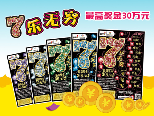 近日,“頂呱刮”家族又一新成員——“7樂無窮”火熱登陸我省,此票是一款數(shù)字類主題即開票,面值10元,頭獎30萬元,共有12次中獎機會。