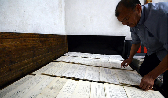 甘福保說,收藏高考試卷是一種情懷,他會一直堅持下去。圖為甘福保收藏的高考試卷。