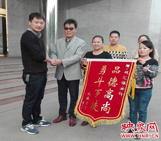 “愛尚寶貝”工作人員為雙匯保衛(wèi)特送上錦旗表達(dá)謝意