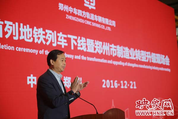 期間,河南省政府副秘書長(zhǎng)王夢(mèng)飛宣讀省委省政府賀信,中車青島四方機(jī)車車輛股份有限公司總經(jīng)理馬云雙代表投資方介紹企業(yè)產(chǎn)品產(chǎn)業(yè)情況,“鄭州造”首列地鐵列車用戶方鄭州市軌道交通有限公司黨委書記、董事長(zhǎng)、總經(jīng)理張洲致辭;鄭州市政府市長(zhǎng)程志明分別做重要講話。