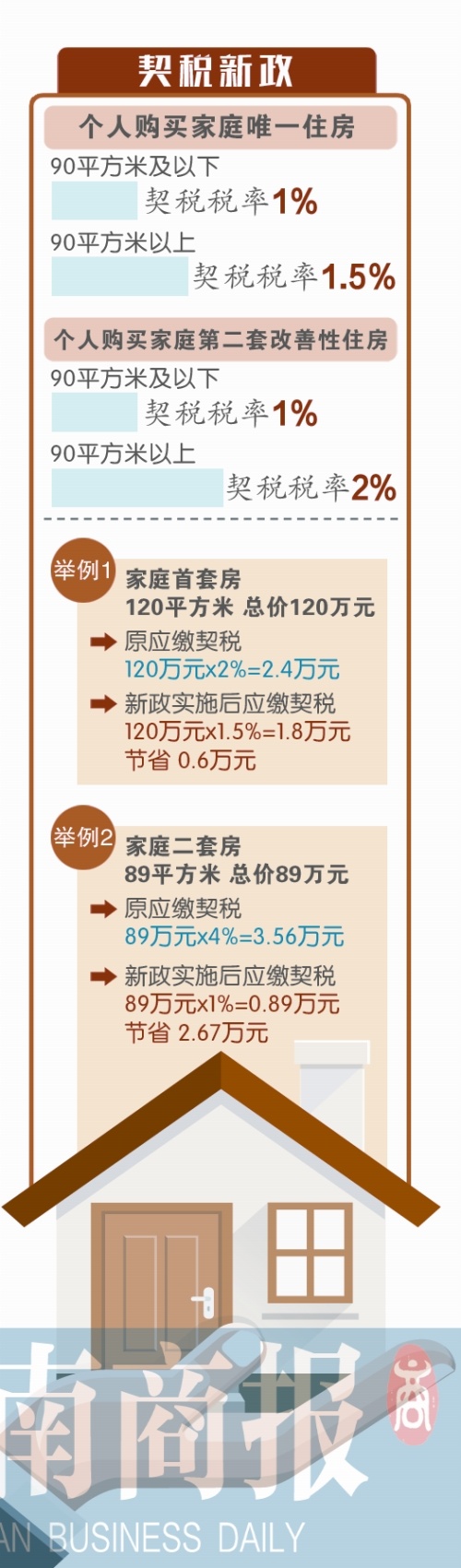 買一套120平方米大的住房,原來動(dòng)輒需要繳納兩萬多元的契稅,新政實(shí)施后能省幾千元;買二套房原來動(dòng)輒需要繳納三四萬元的契稅,以后最少能省一半。