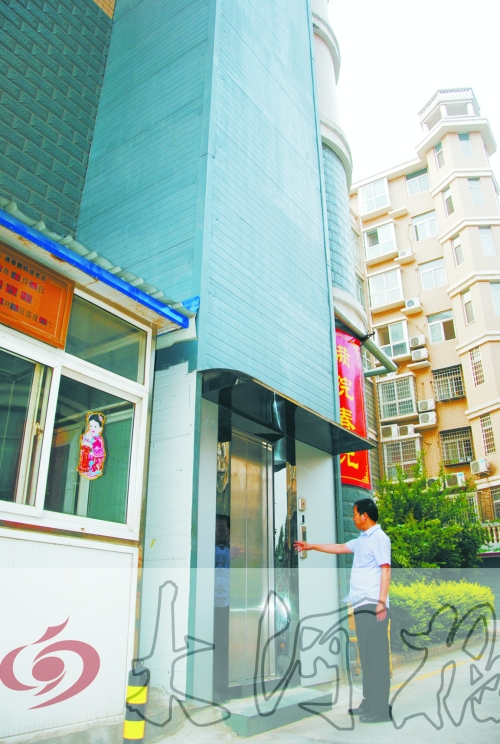昨日傍晚6時(shí)許,記者在新密市一小區(qū)3號(hào)樓前見(jiàn)到了這部依樓而建直達(dá)頂樓7樓的電梯。小區(qū)物業(yè)部的韓經(jīng)理說(shuō),這部電梯是去年10月份建成的,僅供7樓住戶李先生家使用。李先生在煤礦工作,家中的經(jīng)濟(jì)條件不錯(cuò)。