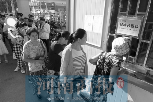當(dāng)天下午4點多,位于鄭州市醫(yī)學(xué)院立交橋北引橋下的公交卡充值點前人頭攢動,等候辦理業(yè)務(wù)的隊伍從窗口一直排到了馬路上。“應(yīng)該多開幾個窗口。”王先生在排了40多分鐘隊后抱怨道。
