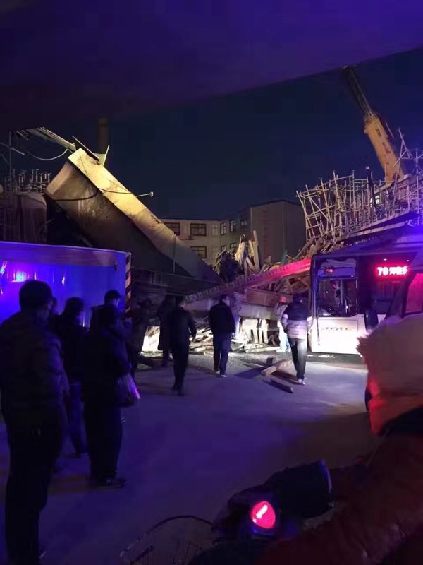 映象網(wǎng)快訊(記者 阮海峰 駱瓊 王邵怡 何葉 燕子丹)1月12日20時50分許,鄭州農(nóng)業(yè)路沙口路高架橋一處施工中的橋面發(fā)生坍塌事故,路經(jīng)此處的79路公交車車頭部位遭遇撞擊受損,事故發(fā)生后公安、消防、醫(yī)療及公交等多部門已趕赴現(xiàn)場進行處置。