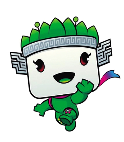 吉祥物頭飾由“中”字、“月季花”和“花心”組成,“中”字代表中原,即中原承載的文化個性與屬性,月季花是鄭州的市花,花心代表未來和希望,頭飾中發(fā)箍采用青銅紋飾的造型語言進(jìn)行表現(xiàn),胸前的紋飾則采用傳統(tǒng)圭紋提煉演繹而成。青銅紋與圭紋的使用,體現(xiàn)中原商鼎及玉圭禮器文化的淵源。