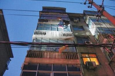 醉酒男子跳樓懸掛五樓 被妻子一把抓住