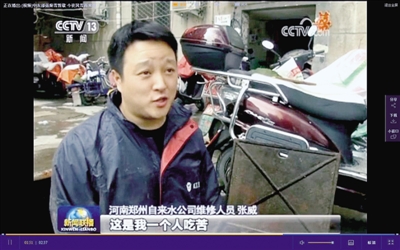 1月4日,大雪紛飛,穿著短袖搞搶修的張威,迅速火爆了朋友圈和媒體圈,被親切地稱(chēng)為“短袖哥”,甚至上了央視新聞聯(lián)播。作為一名退伍軍人,張威從2000年就走進(jìn)自來(lái)水公司,扎根一線(xiàn)搞搶修,曾獲得鄭州市職工技術(shù)運(yùn)動(dòng)會(huì)管道工冠軍,被授予市五一勞動(dòng)獎(jiǎng)?wù)隆?/p>