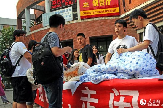 2015年05月31日,北京,清華大學(xué)大三學(xué)生小龍在宿舍樓旁擺起了攤位,一則“大量畢業(yè)學(xué)姐被褥”的廣告語,引發(fā)大量學(xué)子圍觀。