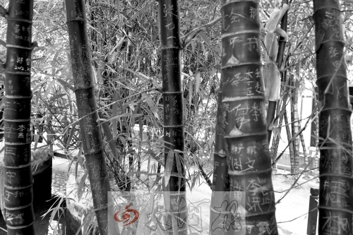 青竹林區(qū)數(shù)百棵竹子上都刻滿(mǎn)了密密麻麻的文字