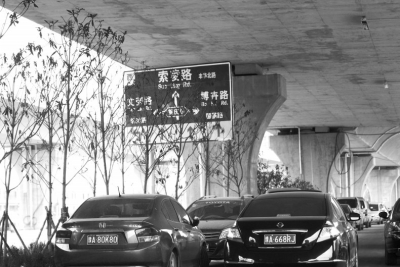昨天,中州大道依然難走,中州大道上的農(nóng)業(yè)路口和東風(fēng)路口,排隊(duì)等了3個信號燈才能通過。