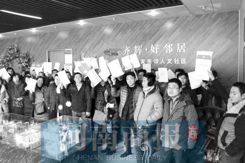 2016年12月30日上午,河南商報(bào)記者陪同數(shù)十位購(gòu)房者來(lái)到“齊輝·好鄰居”售樓部,但并無(wú)銷(xiāo)售經(jīng)理接待,售樓部財(cái)務(wù)室內(nèi)有幾名工作人員,面對(duì)提問(wèn),工作人員沉默不語(yǔ)。