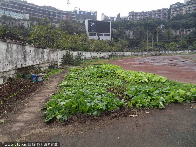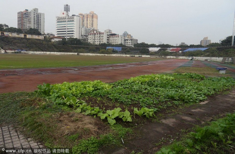 2012年11月26日,重慶,因改造修繕遲遲不動工,場地日常的維護和管理越來越困難,新中國第一座甲級體育場--大田灣體育場荒廢成菜地。重慶大田灣體育場,是新中國第一個甲級體育場,1951年在賀龍的主持下修建,占地面積12萬平方米,是建國初期重慶十大建筑之一。大田灣體育場曾經(jīng)一直是重慶各足球俱樂部的主場,在中國足球甲A和中超時期,大田灣體育場先后經(jīng)歷過前衛(wèi)寰島、重慶隆鑫、重慶力帆等足球隊,見證了重慶足球的輝煌與滄桑。