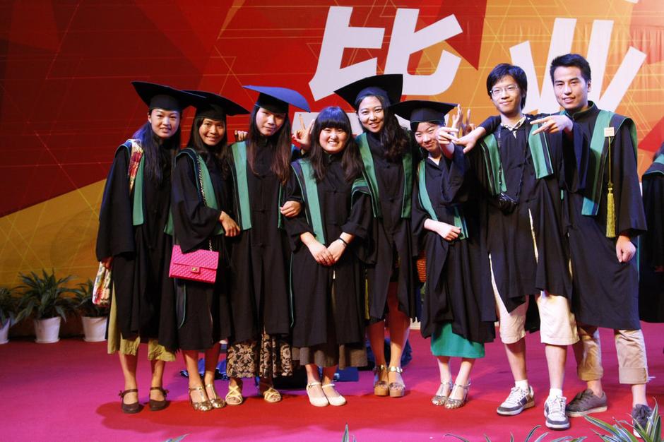 2013年6月26日晚,杭州,中國美院舉行2013屆畢業(yè)典禮,本科畢業(yè)生統(tǒng)一身著新式學(xué)位服拍照留念。