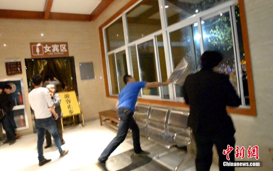 4月30日,浙江杭州蕭山湘湖金沙戲水螢飛夜主題活動,游客因螢火蟲數(shù)量稀少未達(dá)到主辦方所承諾的觀賞效果而引發(fā)雙方?jīng)_突,上演萬人齊喊退票。景區(qū)部分設(shè)施被打砸。中新社發(fā) 李晨韻 攝