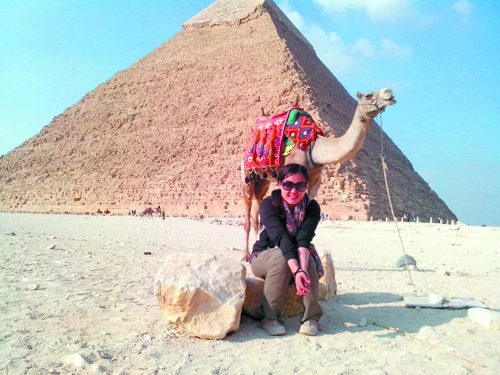 在金字塔留影