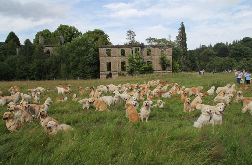 俱樂部將聚會(huì)定在蘇格蘭是因?yàn)樵缭谑攀兰o(jì),金毛犬便起源于此,它的培育人名叫Lord Tweedmouth。2006年,為了慶祝俱樂部成立50周年,這里舉辦了第一場(chǎng)類似的聚會(huì)。而今年的規(guī)模與參與者都達(dá)到了最高峰,組織者吉姆·理查森(Jim Richardsson)更是不顧一切麻煩,在三個(gè)月焦頭爛額的準(zhǔn)備之后,成功舉辦了這一場(chǎng)盛宴。