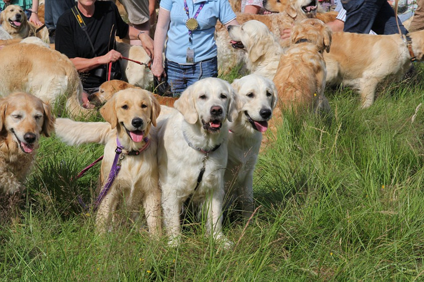 金毛犬,又名金毛尋回犬(Golden Retriever),其友好溫順的個(gè)性深得人們喜愛,在全球累積了不少“金毛粉絲”。據(jù)英國(guó)《每日郵報(bào)》8月13日?qǐng)?bào)道,英國(guó)北部蘇格蘭的金毛俱樂部在上個(gè)月舉辦了第三場(chǎng)世界級(jí)的金毛犬聚會(huì),邀請(qǐng)全世界的金毛飼養(yǎng)者帶著他們可愛的寵物——金毛犬,前來共享這一歡樂的時(shí)刻。而最終參加這個(gè)聚會(huì)的,有222只金毛犬。