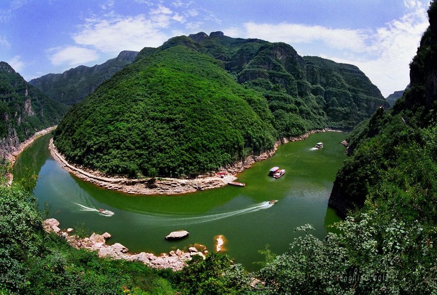 青天河濱水棧道全長8000米,沿大泉湖西岸而建,依山就勢,臨水傍湖,為游客近距離觀賞大泉湖、駱駝峰、千奇洞、鯨魚灣等精品景點提供了便利。沿棧道前行,可以穿深峽、探幽谷、覓奇洞,移步換景,峰回路轉(zhuǎn),偶爾幾掛飛瀑,驀然一處險峰,一山一天地,一灣一境界。穿行于棧道,恰似穿行于一條奇妙的丹青畫廊,聽山水清音,賞湖光山色,歷人間仙境,覓世外桃源,于你是一次物我兩忘的精神之旅。