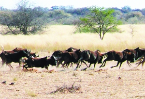 沒(méi)有交談,沒(méi)有笑聲,保持著靜默的狀態(tài),連越野車(chē)也盡量壓抑著發(fā)動(dòng)機(jī)的聲音,我們緩慢地向一群牛羚靠近。這幫家伙可是好不容易才安靜下來(lái)的,在遠(yuǎn)距離上,不等動(dòng)物完全靜止下來(lái)是很難打中的,剛才的一槍就放空了,驚嚇得它們奔跑了好久。