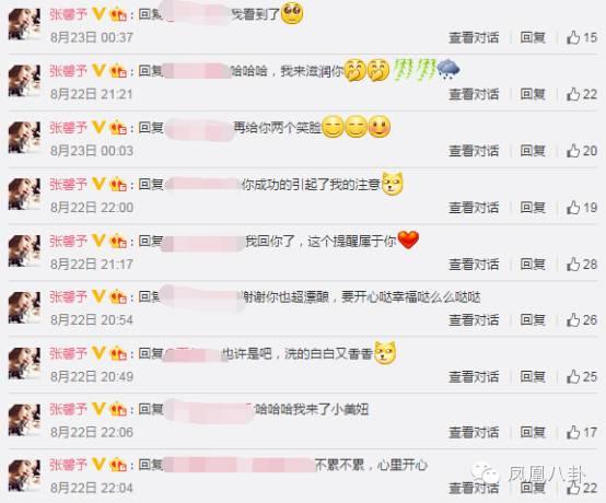 前天晚上,張馨予在微博對粉絲大發(fā)福利,說要雨露均沾地“翻牌”,回答粉絲們的問題。