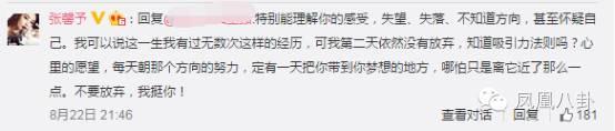 比如有網(wǎng)友正處于藝考的迷茫期,求問怎么辦。張馨予以自身經(jīng)歷開導(dǎo)她:“我一生中有無數(shù)這樣的經(jīng)歷,可是我第二天依然沒有放棄?!辈⒛贸鑫Ψ▌t告訴粉絲,“每天朝那個(gè)方向努力,定有一天把你帶到你夢想的地方?!?/p>