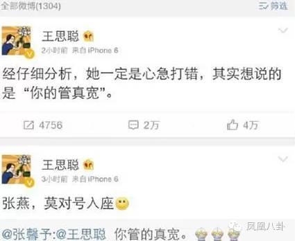 她也發(fā)微博反嗆,還和王思聰公然對挑(不過拋開事件本身不說,小妹(微信公眾號:entifengvip)很反感思聰用這種不尊重女性的字眼誒……)