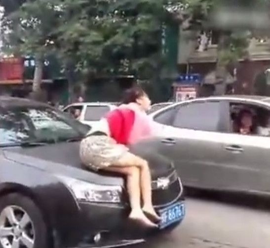 據說這名女子經常出沒在這帶上演人車大戰(zhàn)。路上的小轎車司機看見她就十分的頭痛。因為她專找小轎車下手。其實也不傻!今天又出現(xiàn)在村里的小吃街上了,鎖定黑色雪佛蘭。二話不說就上了它!其實就她的一些小計倆,路邊的人都心知肚明了,誰叫她精神有點不好呢!