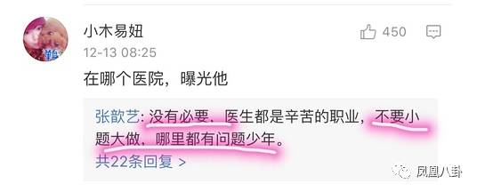 另一派則反對張歆藝公開炮轟醫(yī)生,理由是張歆藝作為公眾人物,這些言論無疑會加劇本來就不和諧的醫(yī)患矛盾。