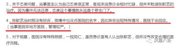 有記者采訪了當(dāng)事醫(yī)生,醫(yī)生給出的答復(fù)“做過了全套檢查,醫(yī)生自問態(tài)度正常,急診很忙但沒有耽誤張歆藝的治療”。