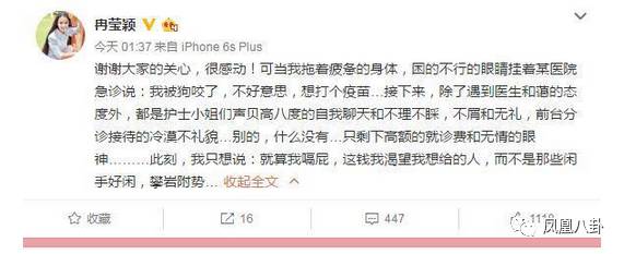 韓雪也曾發(fā)長文指責(zé)急診醫(yī)生看病時態(tài)度不佳: