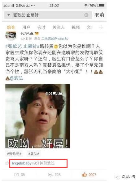 但張歆藝此次吐槽醫(yī)生卻受到前所未有的群嘲,孕媽Angelababy看八卦時手滑點贊了吐槽張歆藝的微博,還被網(wǎng)友稱贊了……