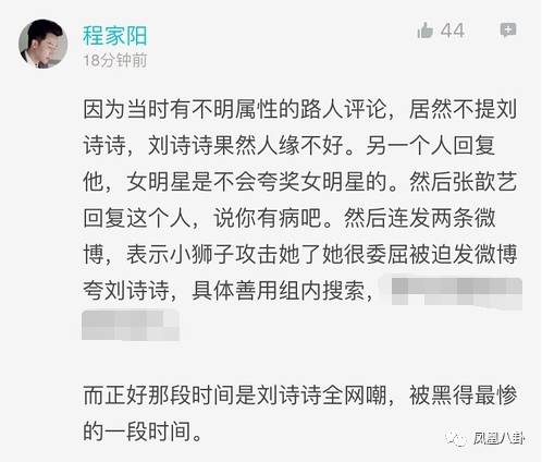 隨后有緊跟兩條夸贊劉詩詩,但口氣卻不似正常表揚。