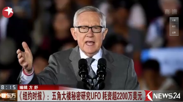 報(bào)道還稱,據(jù)埃利松多透露,自2012年國防部停止撥款后至今,他仍與海軍和中情局(CIA)官員合作調(diào)查UFO事件,但他今年10月遭部門內(nèi)部反對(duì),因此向國防部長(zhǎng)馬蒂斯提出辭職以示抗議。