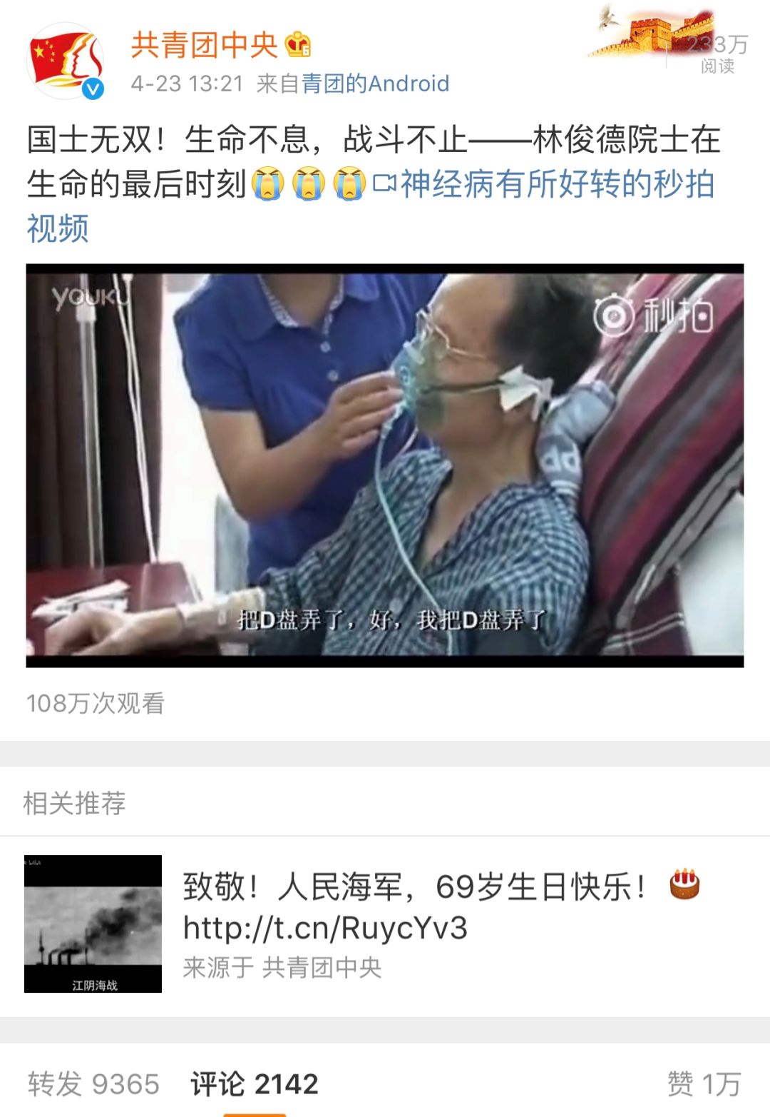 23日,@共青團(tuán)中央 微博發(fā)的這個(gè)視頻,近萬網(wǎng)友轉(zhuǎn)發(fā),評(píng)論令人動(dòng)容…