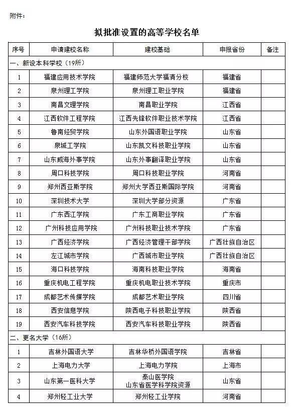 公示指出,根據(jù)《高等教育法》《普通高等學校設置暫行條例》和《普通本科學校設置暫行規(guī)定》等有關(guān)規(guī)定,經(jīng)第七屆全國高等學校設置評議委員會專家考察和評議,40所省級人民政府申報設置的高等學校獲得通過。
