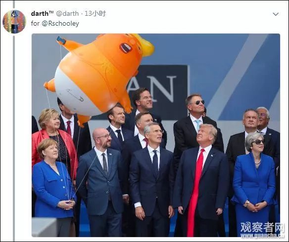 但是,白宮社群媒體主任史卡比諾 (Dan Scavino Jr。)卻站出來指責(zé)“假新聞”。他表示,當(dāng)時各國領(lǐng)導(dǎo)人正在抬頭看天空中飛過的13國直升機,并配上了一張動作整齊劃一的照片。