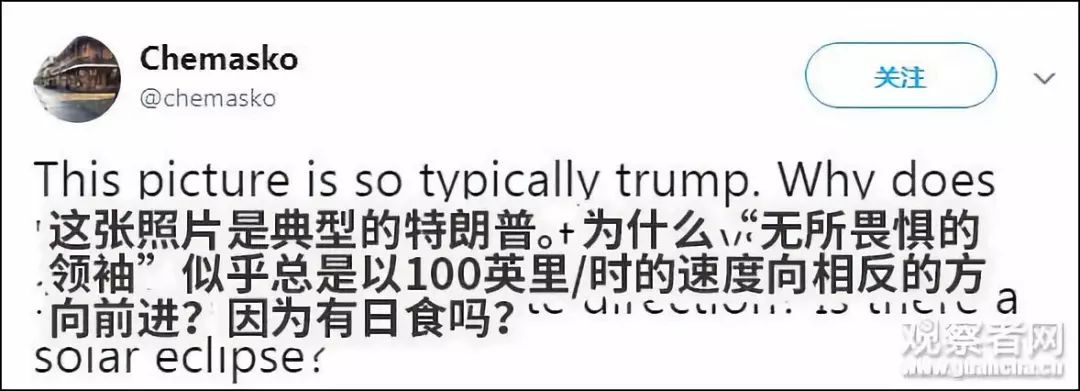 于是,有人從這張照片中讀出了點政治隱喻,又扯上了美國國內(nèi)懷疑特朗普“通俄”的陰謀論: